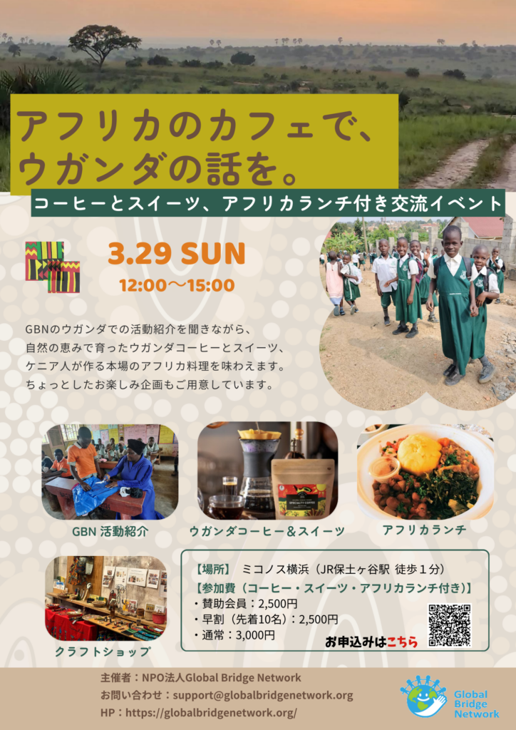 【イベント開催】3/29 アフリカのカフェで、ウガンダの話を。by globalbridgenetwork2026年2月23日2026年2月23日 申込はこちらから👇https://docs.google.com/forms/d/e/1FAIpQLSe6Dco1xI4jSOA-ndSyrBMFSaRurTJLpTBGz8Q7GVKhAmxNCg/viewform?usp=dialog